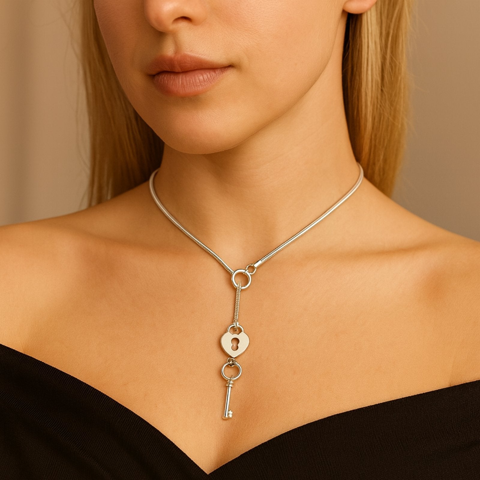 925 Srebrna Ogrlica sa privjeskom Srce / Ključ