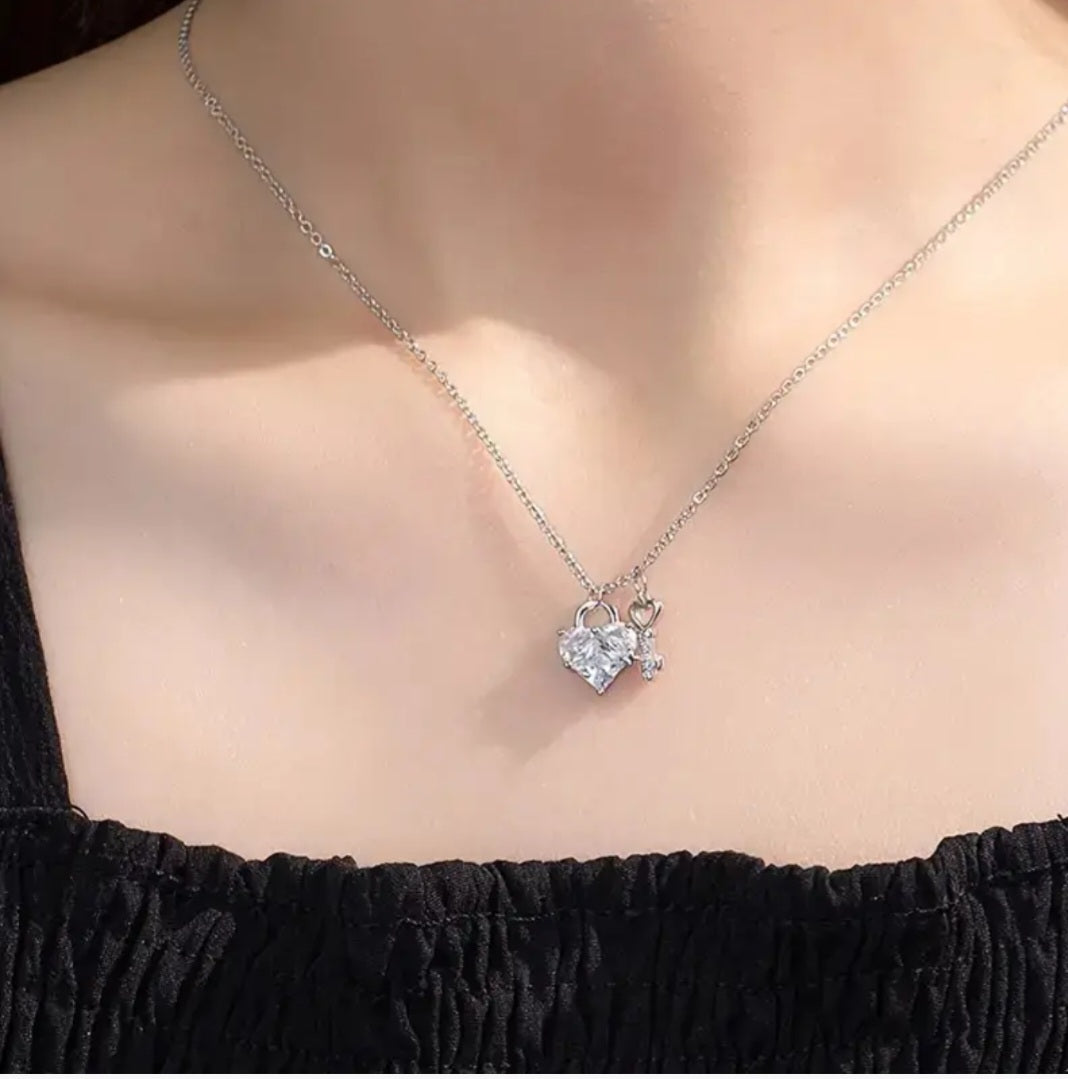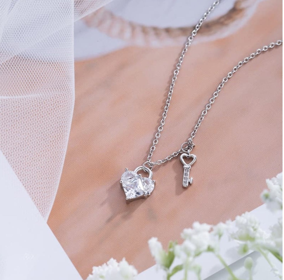 925 Srebrna Ogrlica Srce Katanac i ključ No.043