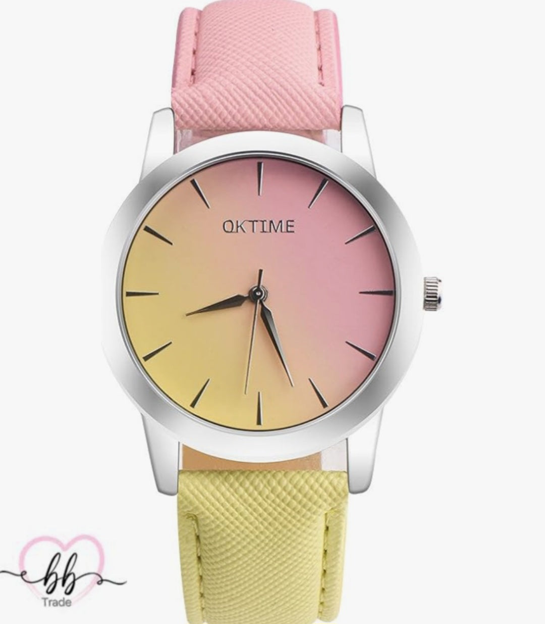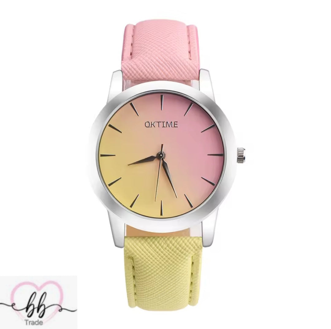 Unesite dašak boje u svoju svakodnevicu s ovim trendi QKTIME ženskim satom s upečatljivim ombre dizajnom.